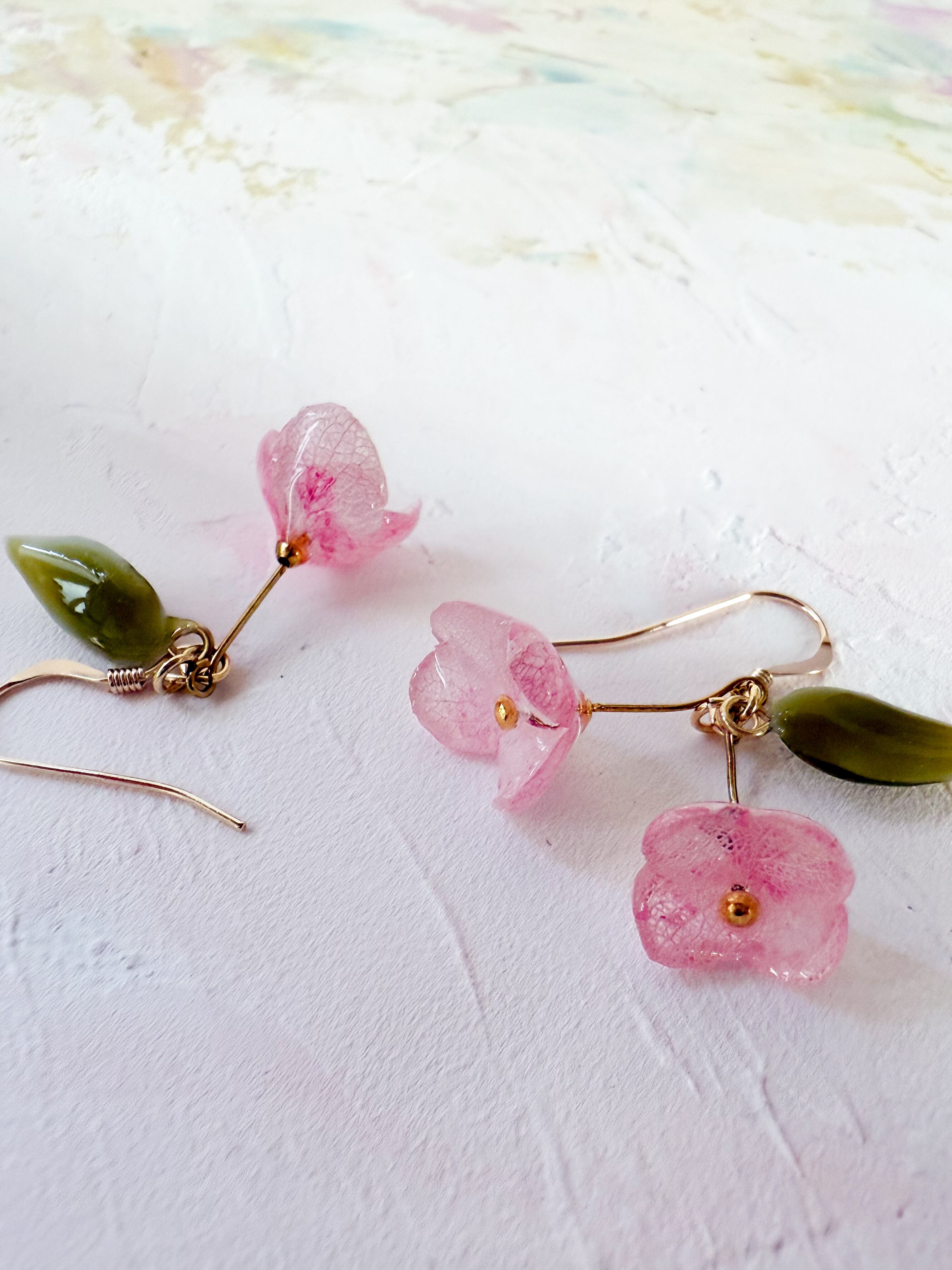 ピンクの花びらをまるで水彩画のような色合いに染め上げ、一枚一枚が繊細な表情になりました。