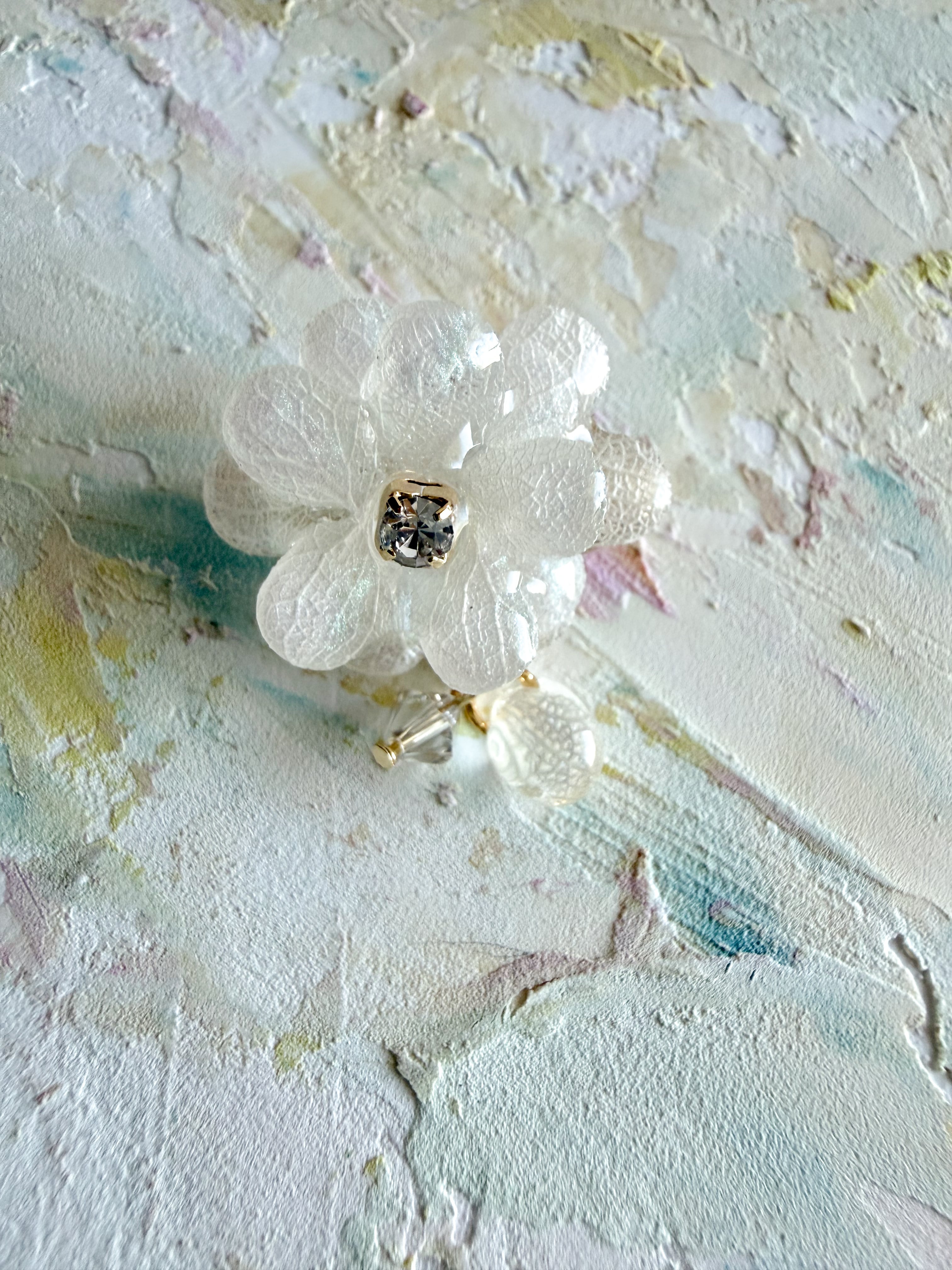 清らかな新雪の白をテーマにした、大花のブローチセッツ(ピアス・イヤリング選択可能)が新たに登場しました。あじさいの花びらを丁寧にカットし、レジンでぷっくりと仕上げられたこのアイテムは、華やかさと優雅さを兼ね備えています。揺れる大花のデザインが、あなたのスタイルに特別な魅力を与え、存在感を引き立てます。
