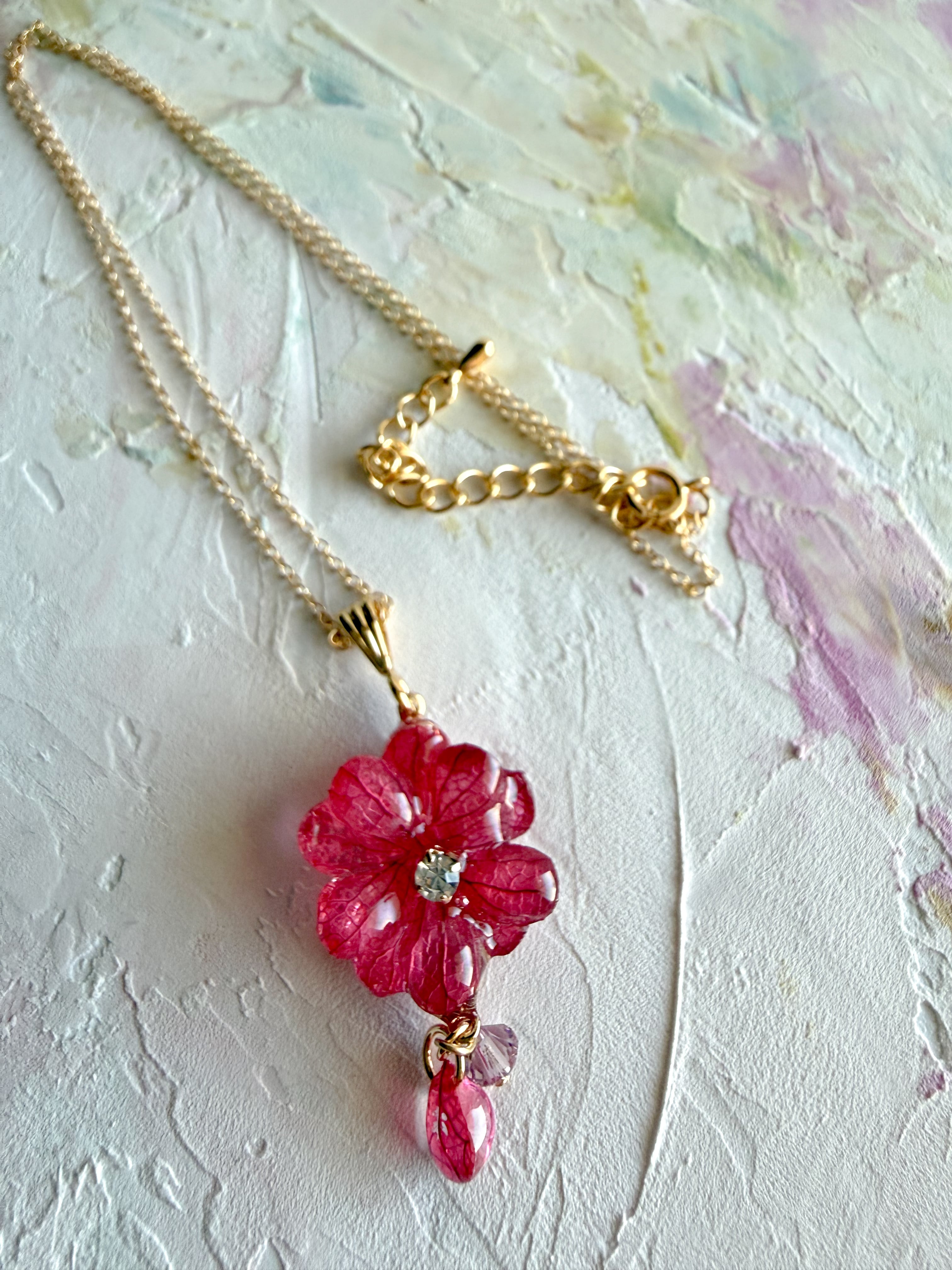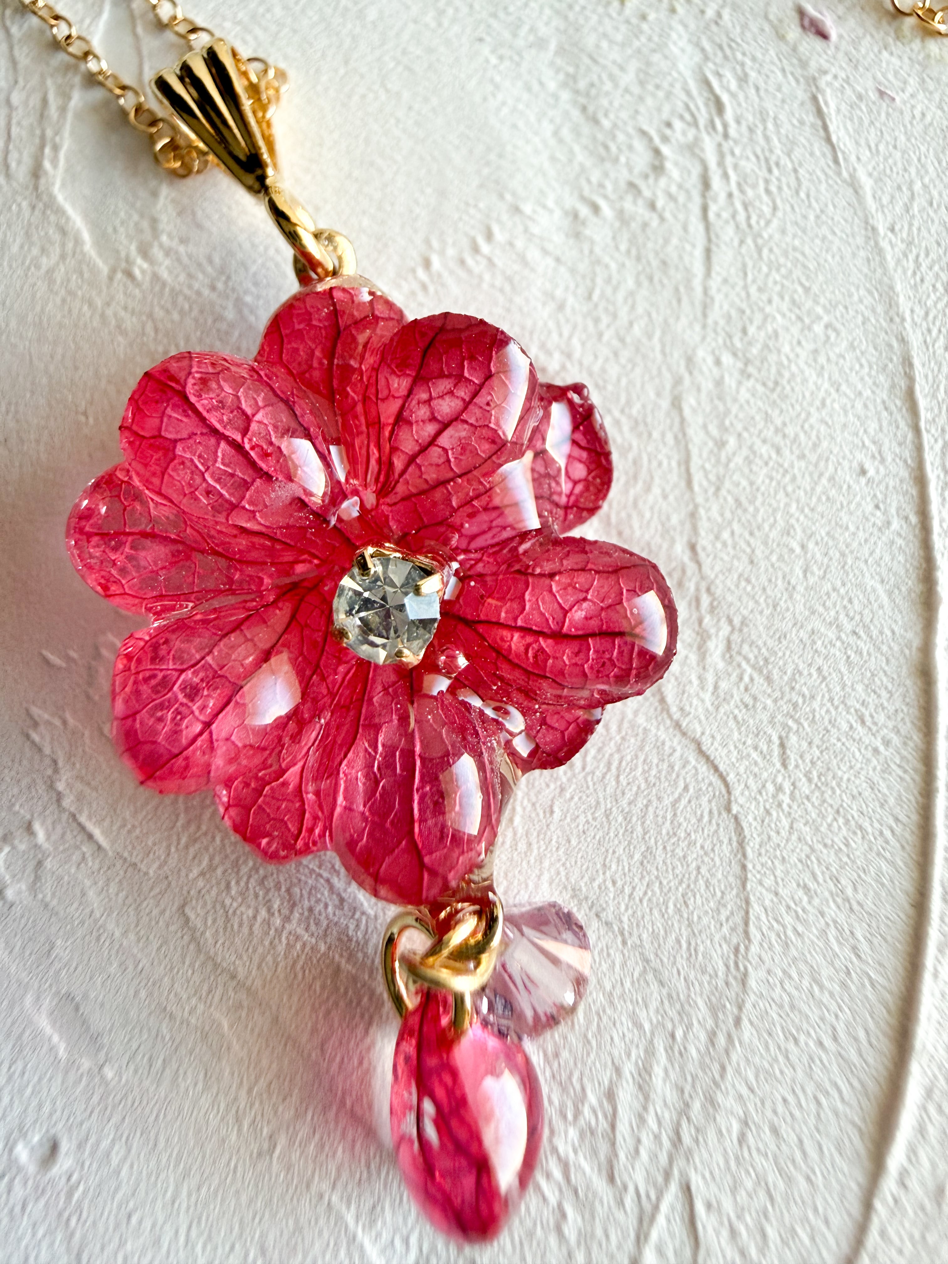 心を込めて一つ一つ作られたあじさいの花びらは、本物さながらの美しい質感を持ち、特別な日や日常使いにもぴったりです。ボルドーの赤の豊かな色合いは、見る人を惹きつけ、コーディネートに洗練された印象をプラスします。シンプルなスタイルにこのネックレスとピアス(またはイヤリング)を合わせるだけで、一瞬にして上品さを演出できるでしょう。