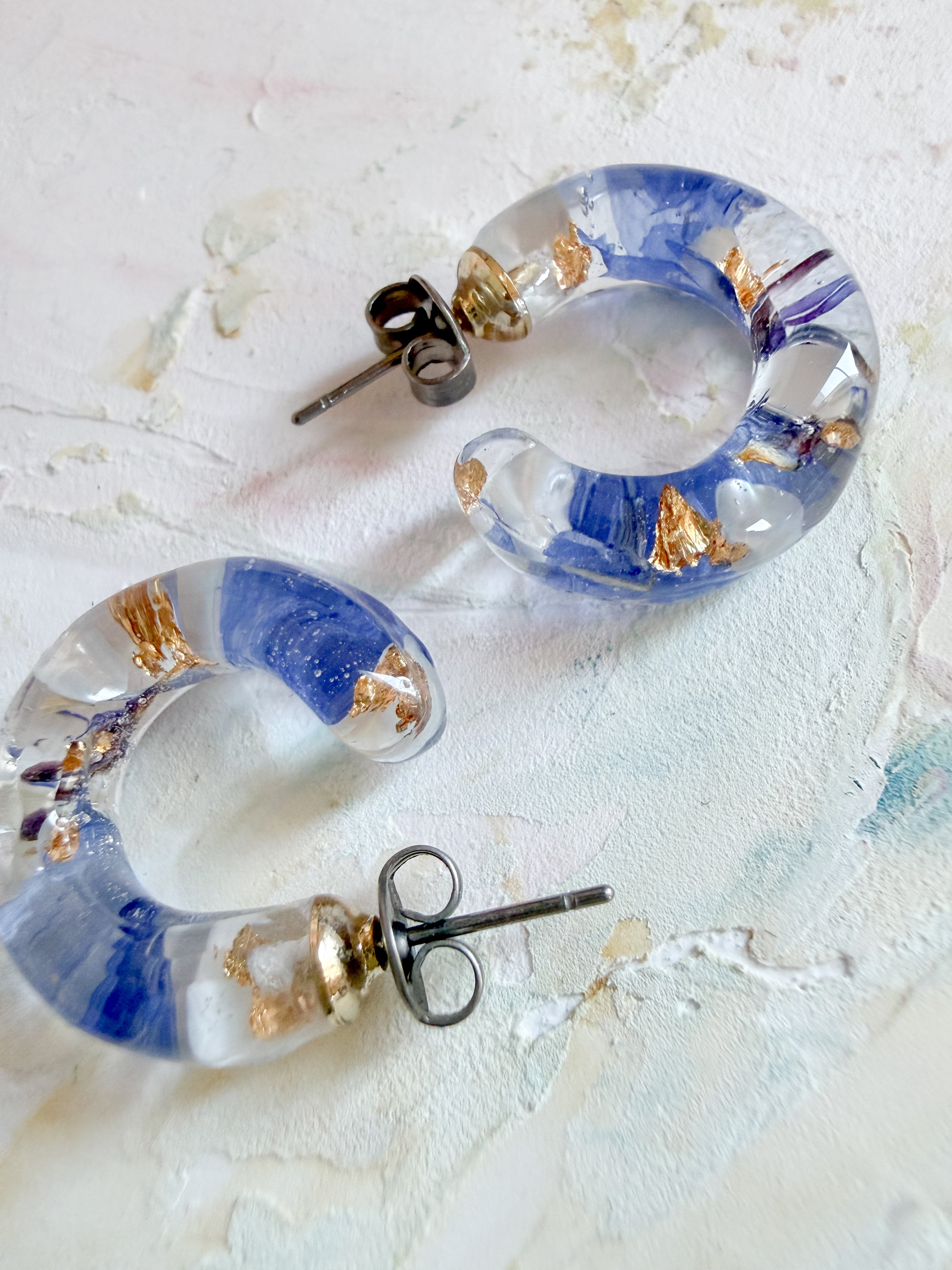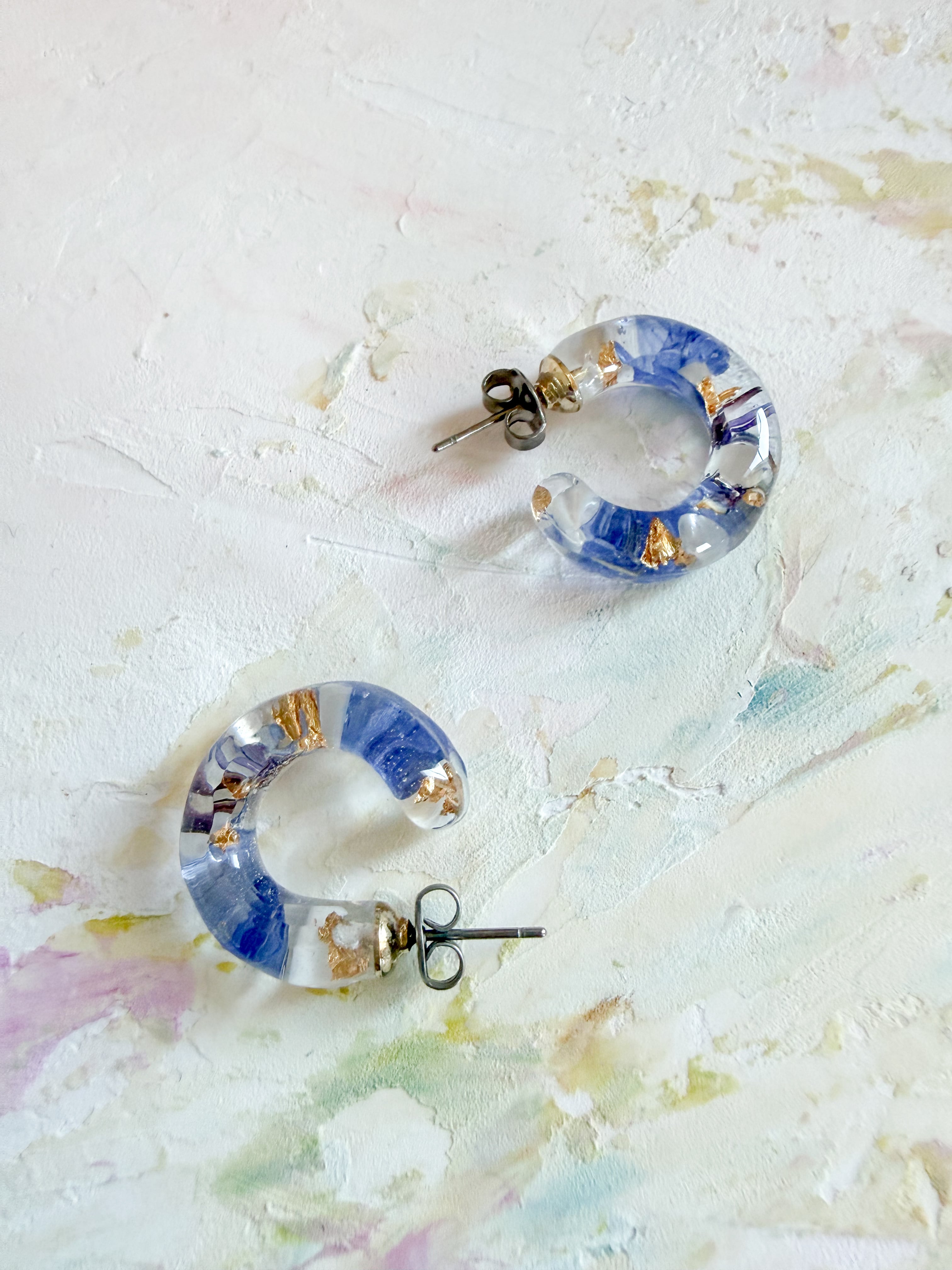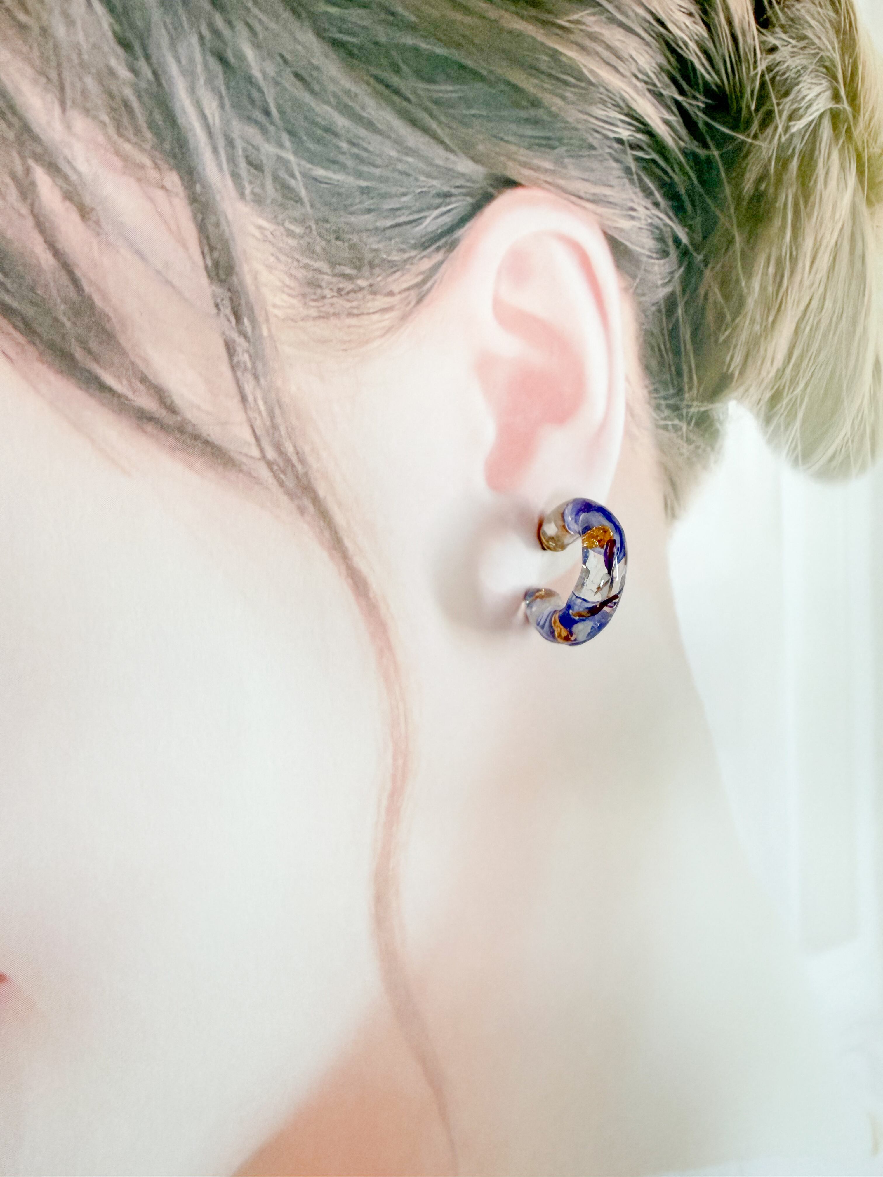 矢車草ブルーフープピアスの大きさ 約2.5センチ