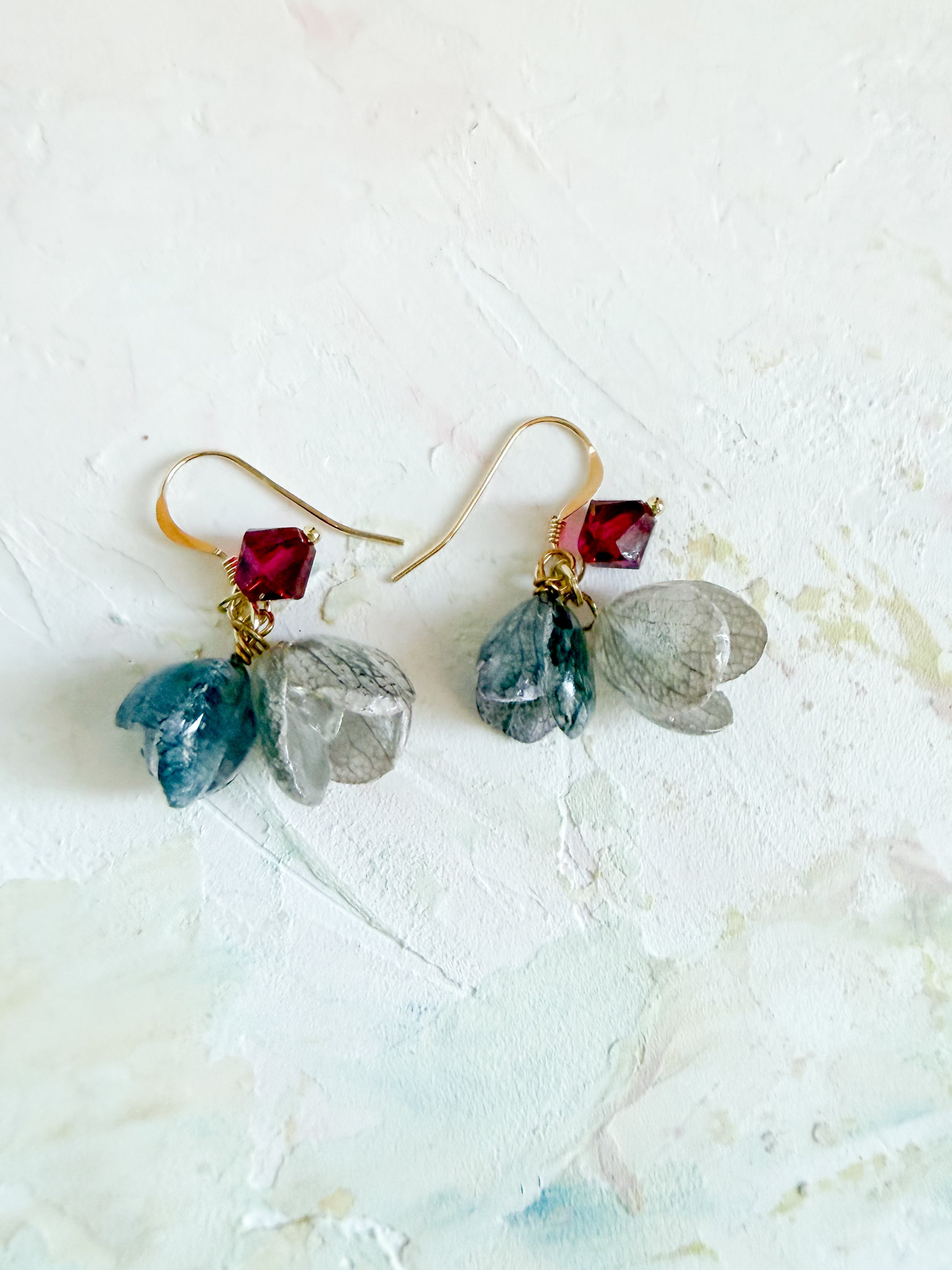 繊細な商品ですので、無理に曲げたり、引っ張ったりしないようご注意ください。特に明記のない商品の金具には金属メッキが使用されていますので、金属アレルギーのある方はご注意いただくことをおすすめします。水濡れや長時間の着用によって、色あせや変色の可能性がありますのでお気をつけください。樹脂を使用した製品の場合、高温多湿な環境での保管を避け、変形や変色を防ぐようにしてください。ハンドメイドパーツや天然素材を使用した製品には、形、色、大きさ、柄に個体差があることをご理解いただければ幸いです。*ひとつひとつのあじさいの良さを感じていただければと思います。*モニターやブラウザの環境によって、色味が異なる場合がございますのであらかじめご了承ください。