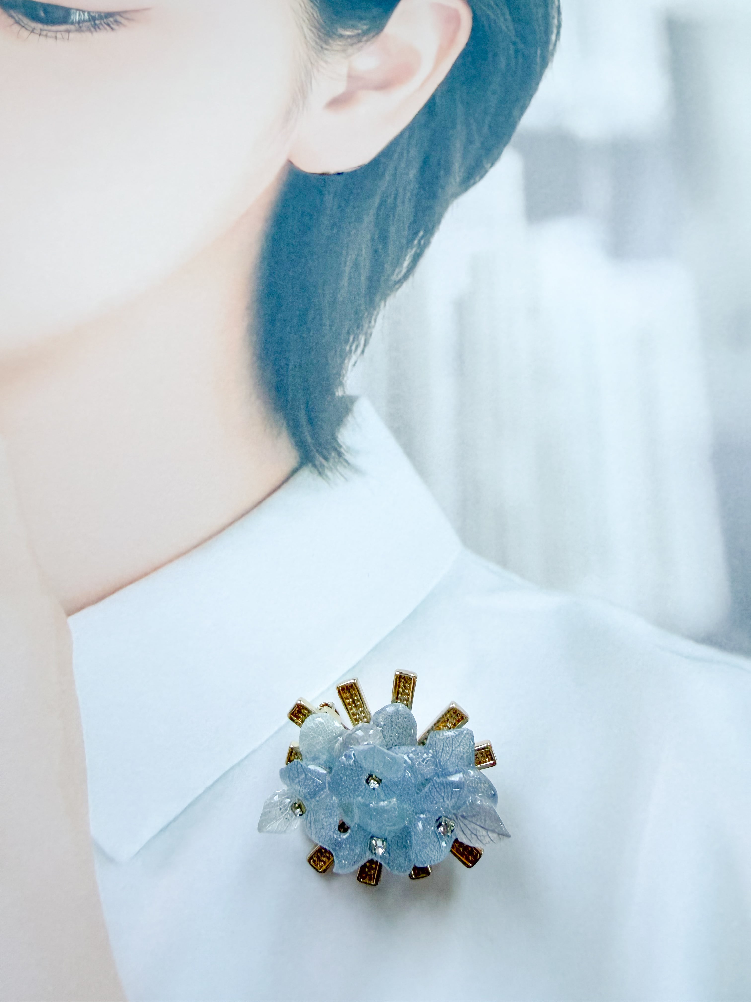 特別な瞬間を彩る素敵なアクセントとして、この美しいあじさいベルグレーピアス・ブルーフープピアス・ブローチをぜひお手元にお迎えください。