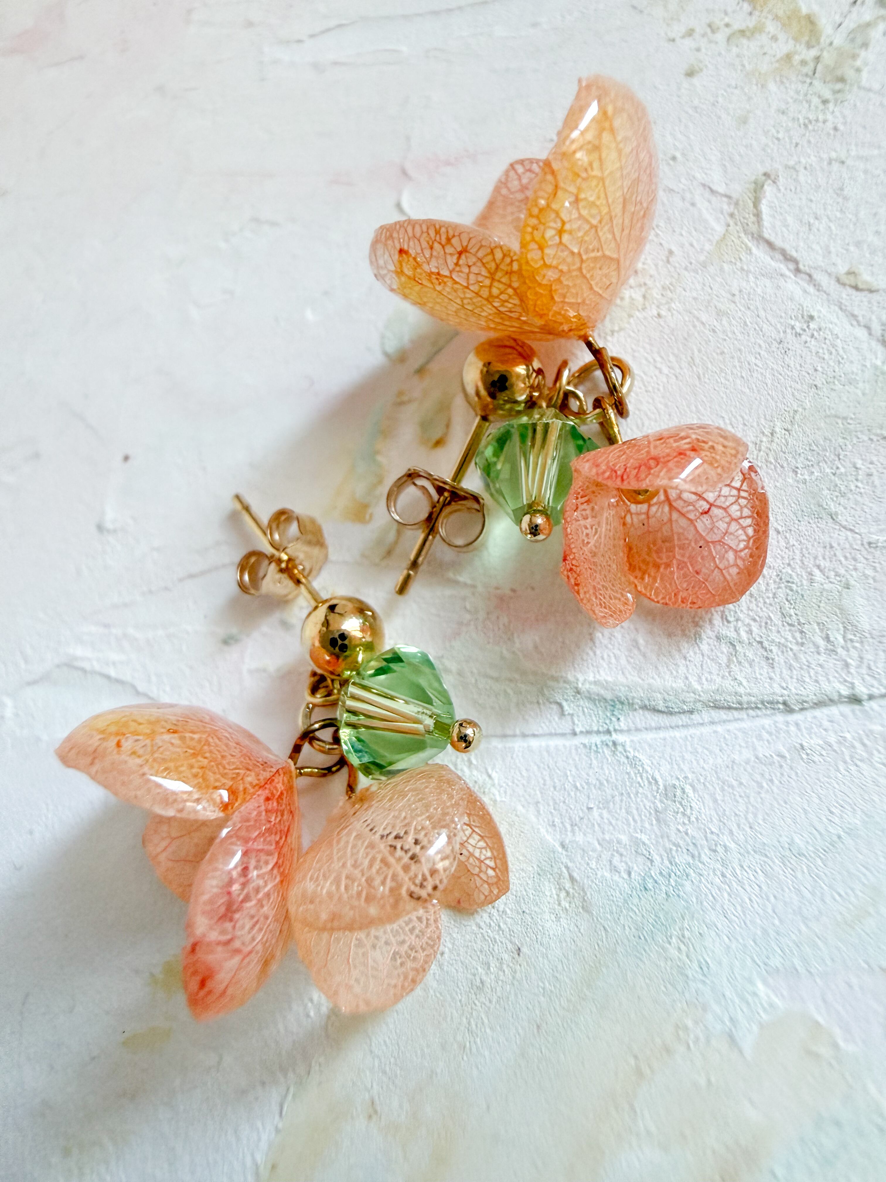 あじさいベルオレンジピアスセット ピアスに変更できます