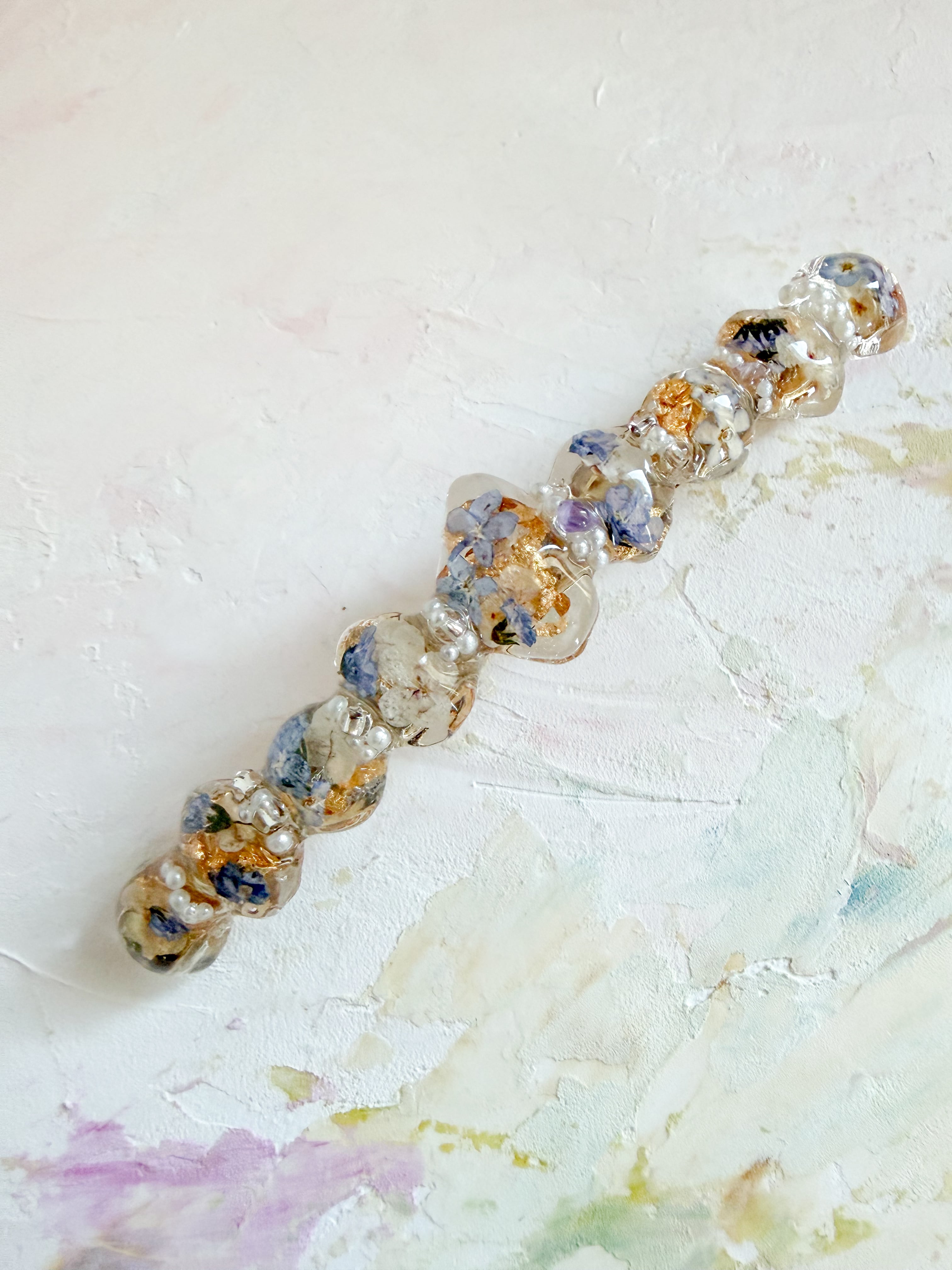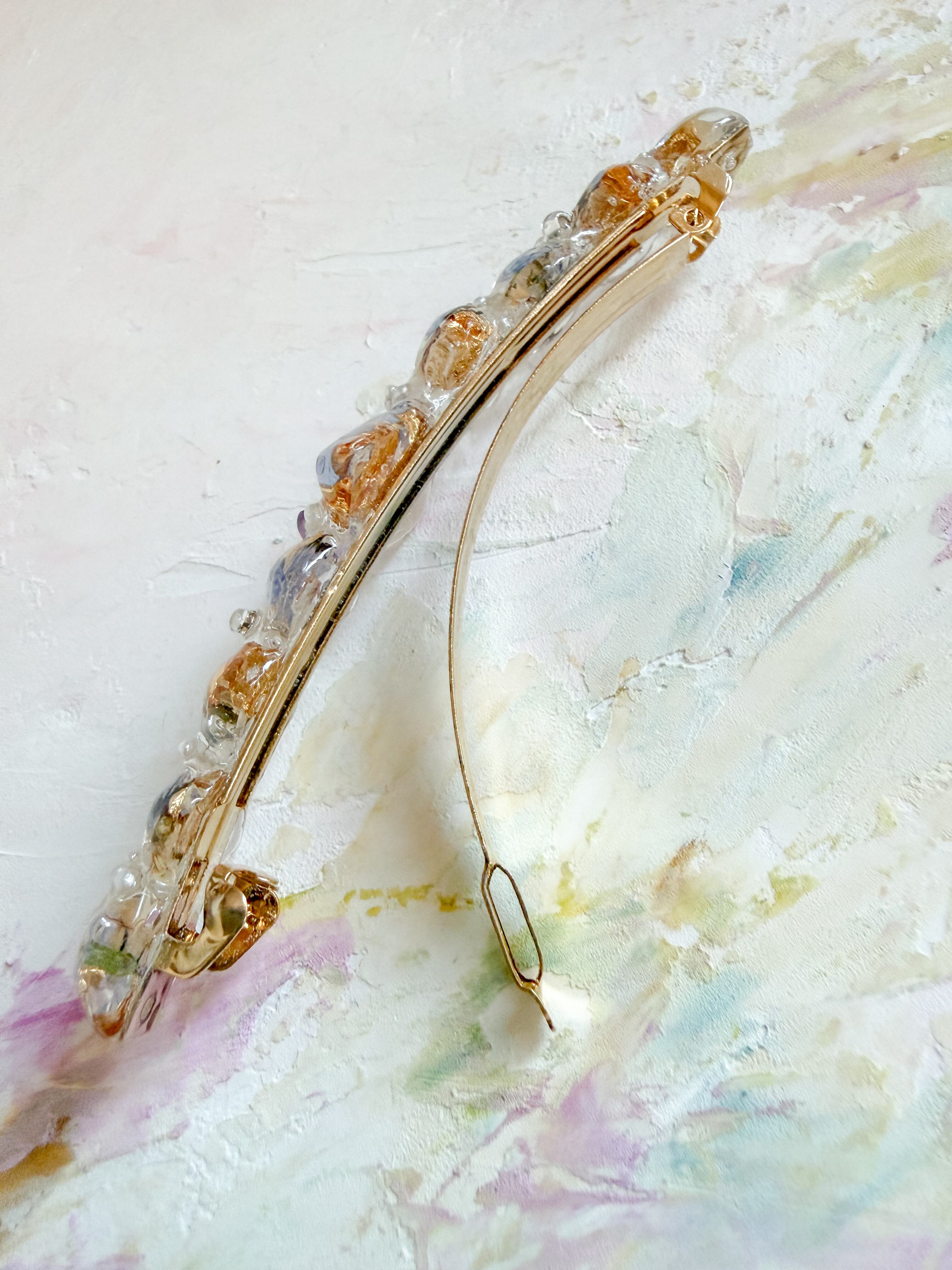 わすれなぐさバレッタの大きさ 約10センチ