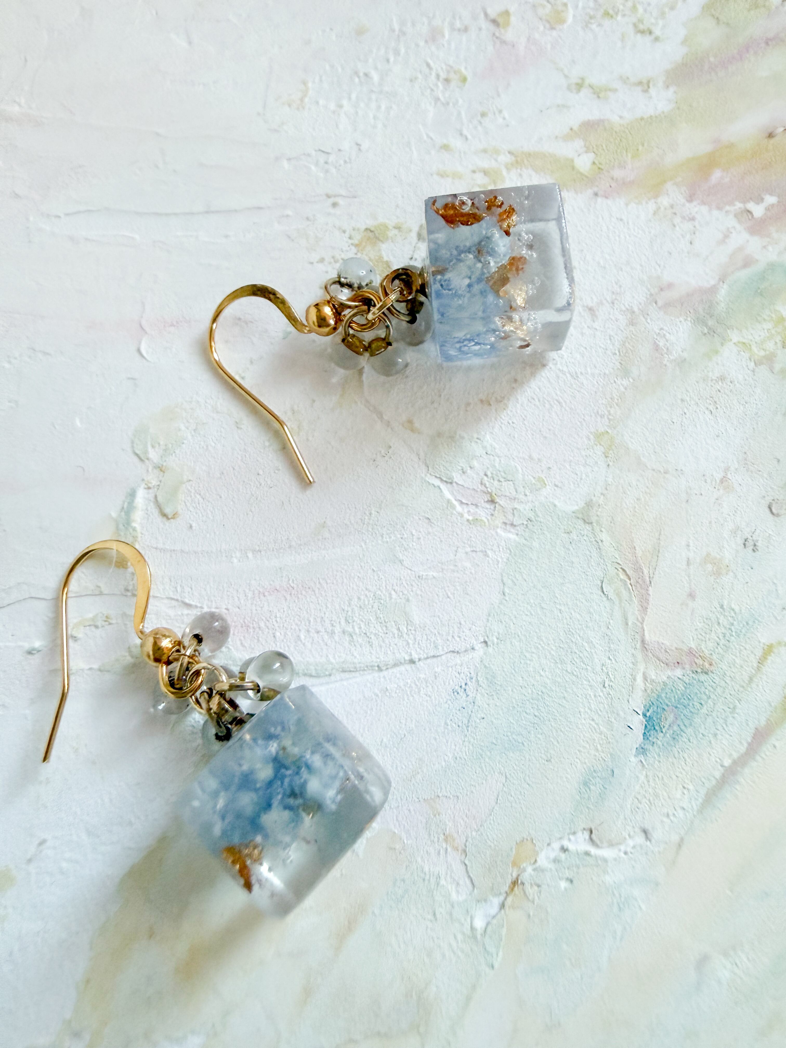 あじさいベルブルーピアス・クリスパムキューブピアス・わすれなぐさバレッタ