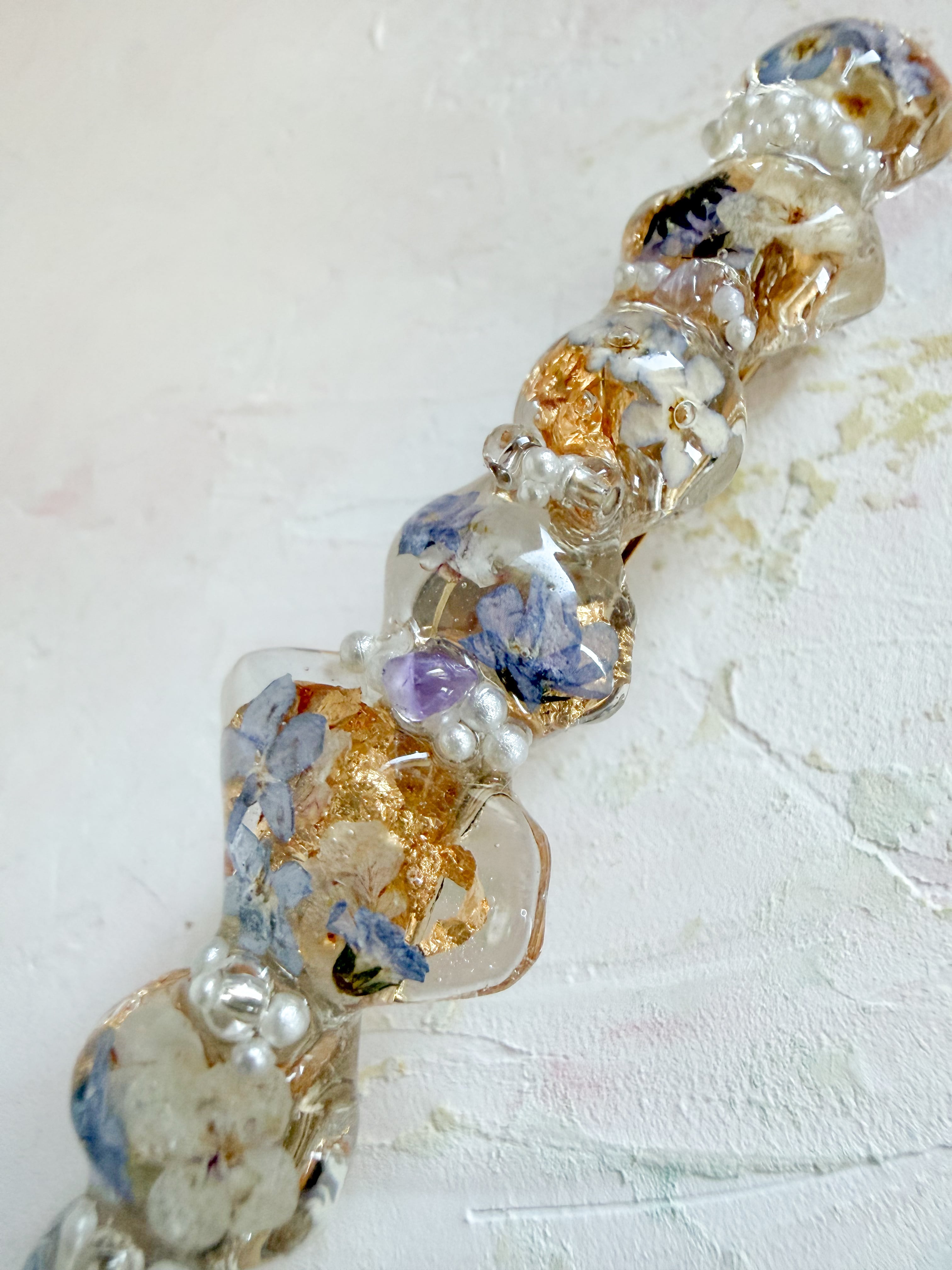 繊細な商品ですので、無理に曲げたり、引っ張ったりしないようご注意ください。特に明記のない商品の金具には金属メッキが使用されていますので、金属アレルギーのある方はご注意いただくことをおすすめします。水濡れや長時間の着用によって、色あせや変色の可能性がありますのでお気をつけください。樹脂を使用した製品の場合、高温多湿な環境での保管を避け、変形や変色を防ぐようにしてください。ハンドメイドパーツや天然素材を使用した製品には、形、色、大きさ、柄に個体差があることをご理解いただければ幸いです。*ひとつひとつのあじさいの良さを感じていただければと思います。*モニターやブラウザの環境によって、色味が異なる場合がございますのであらかじめご了承ください。