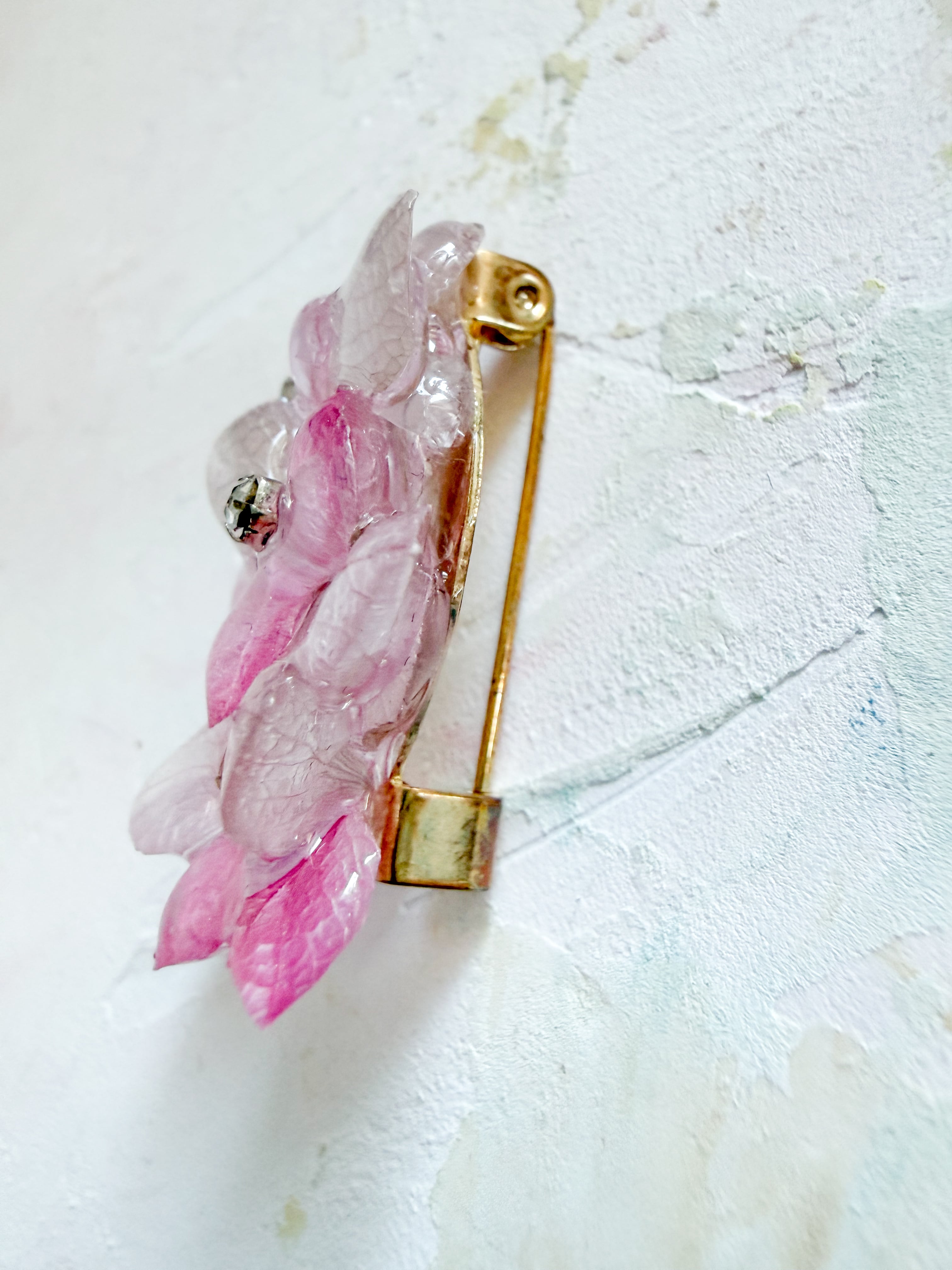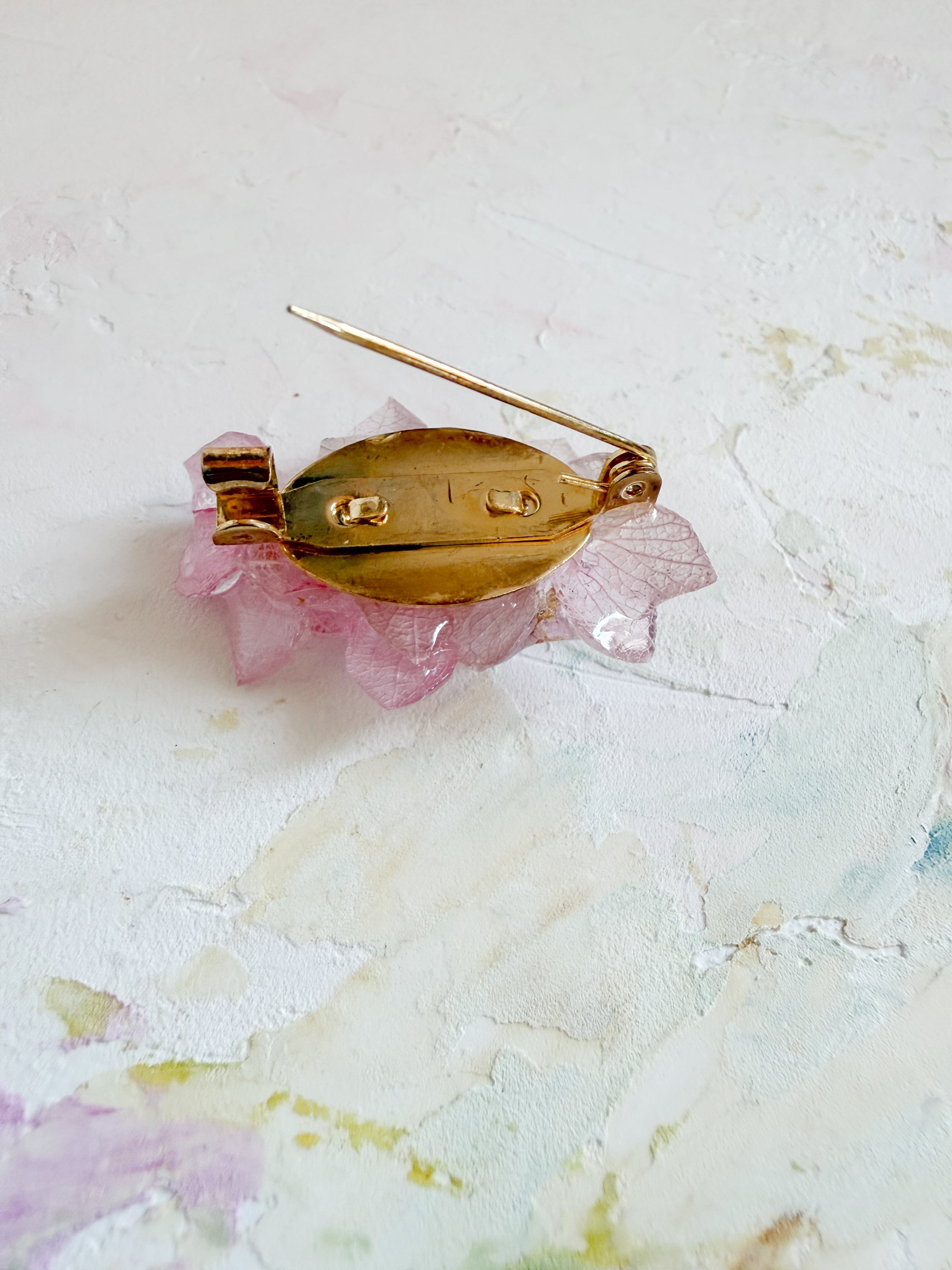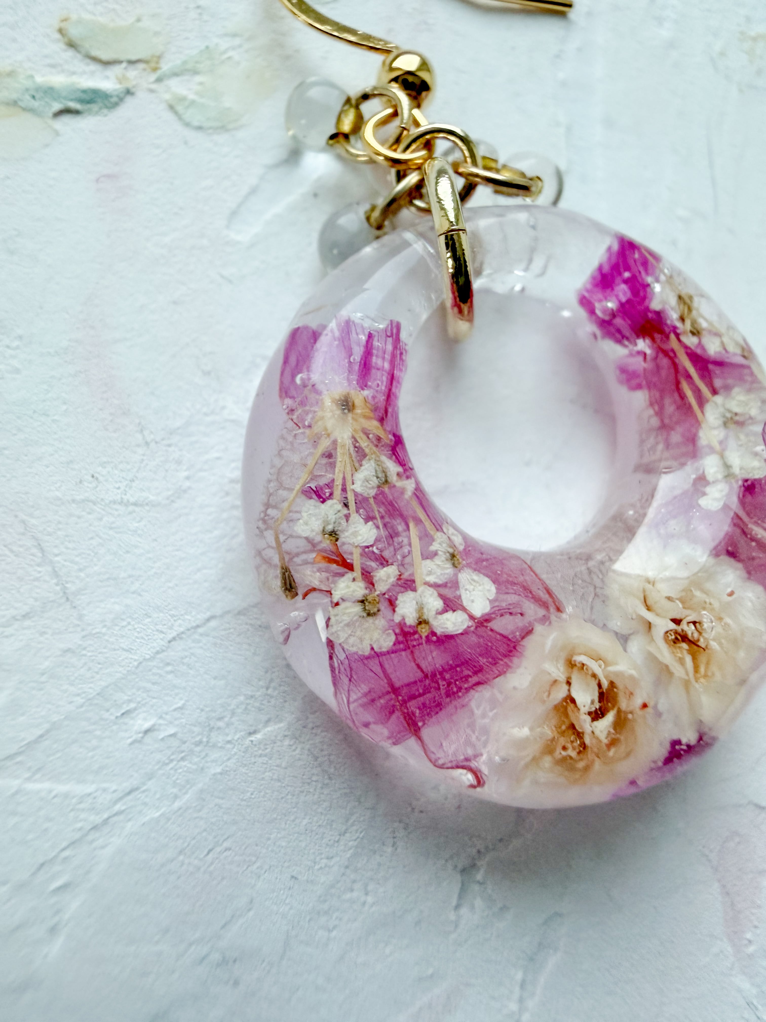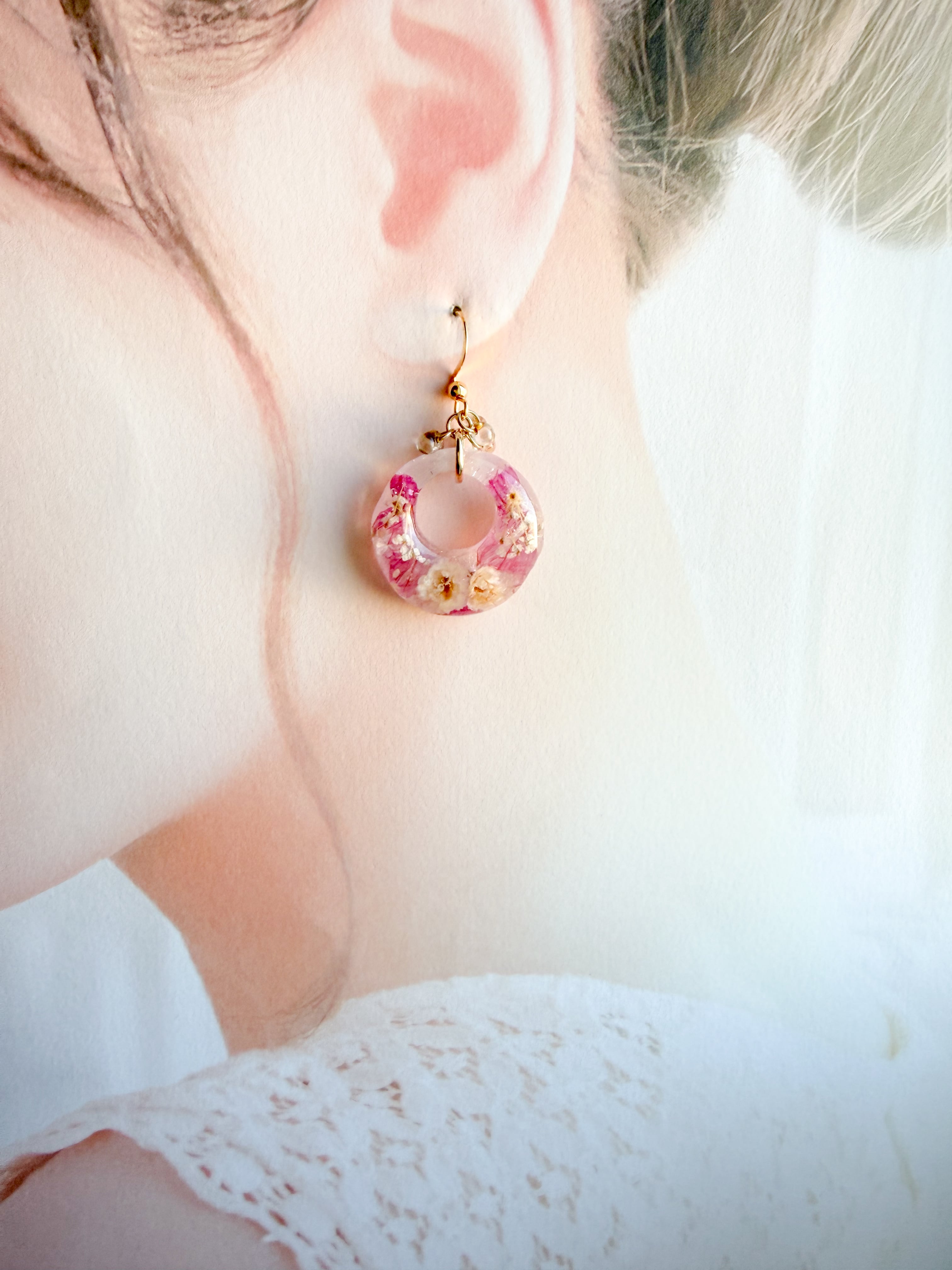 あじさいベルピンクピアス・かすみ草オーバルピアス・あじさいブローチ3点セット