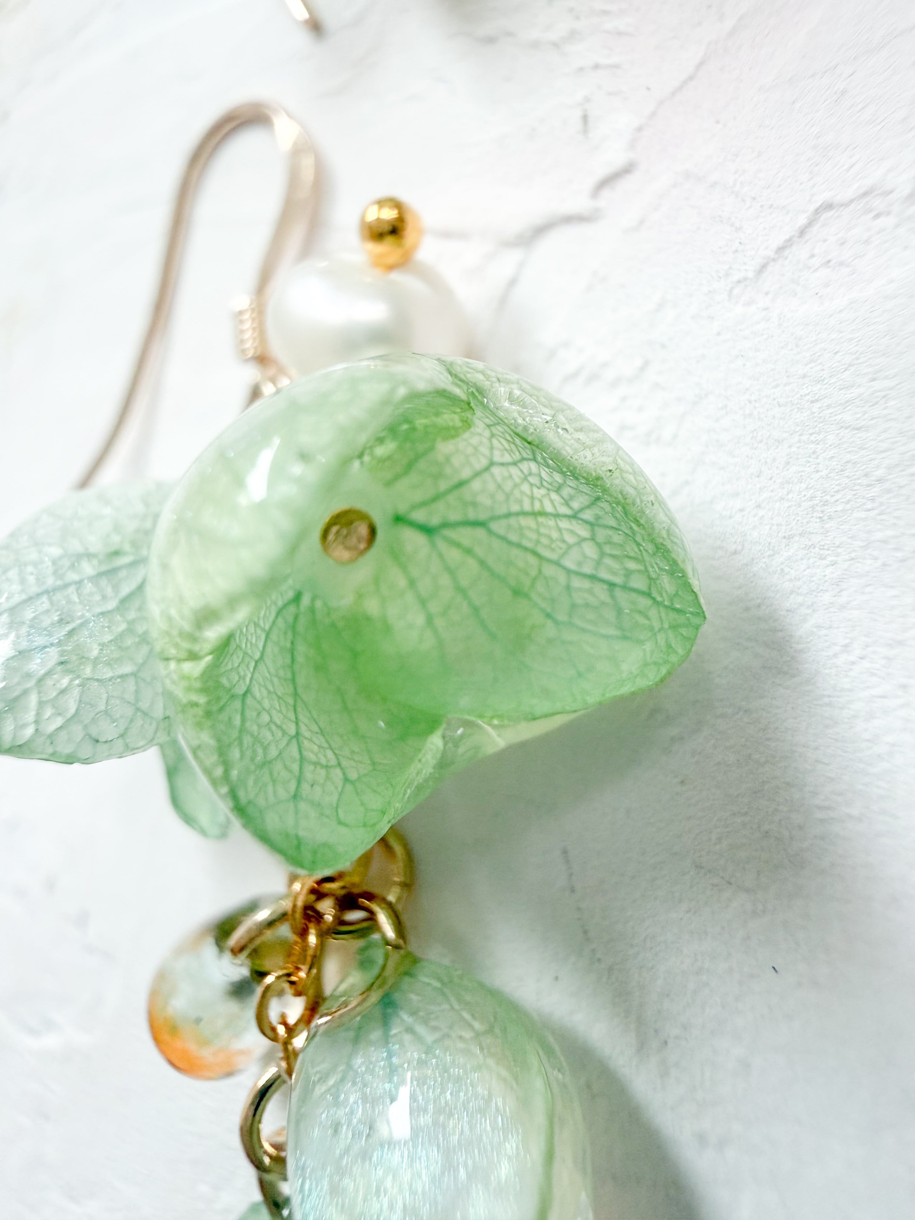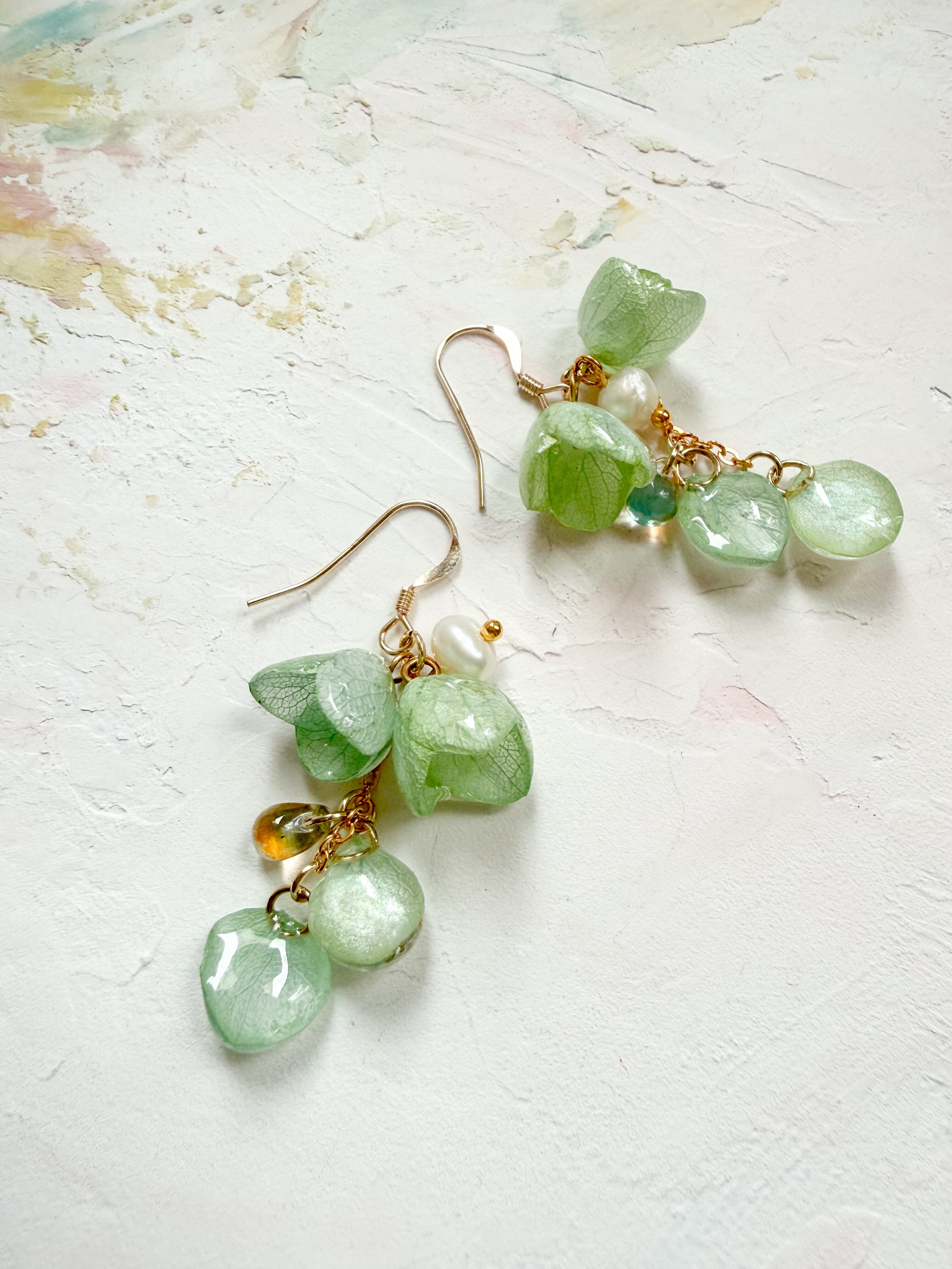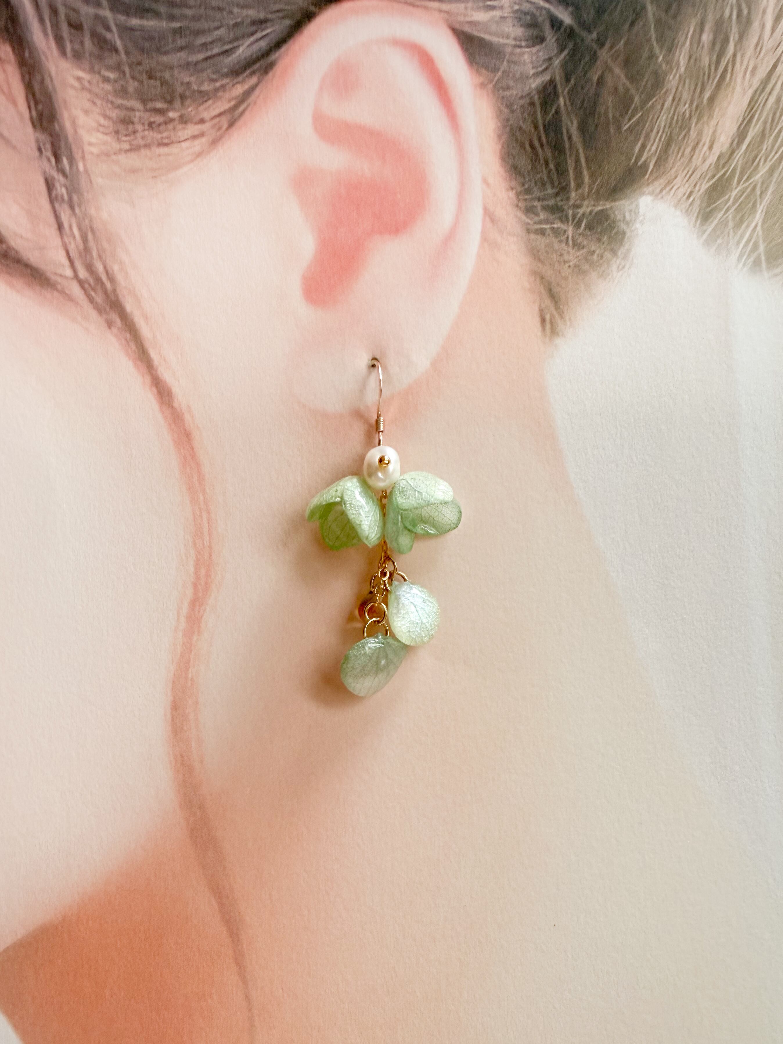 特別な瞬間を彩る素敵なアクセントとして、このあじさいベルの緑ピアス・イヤリングをぜひお手元にお迎えください。