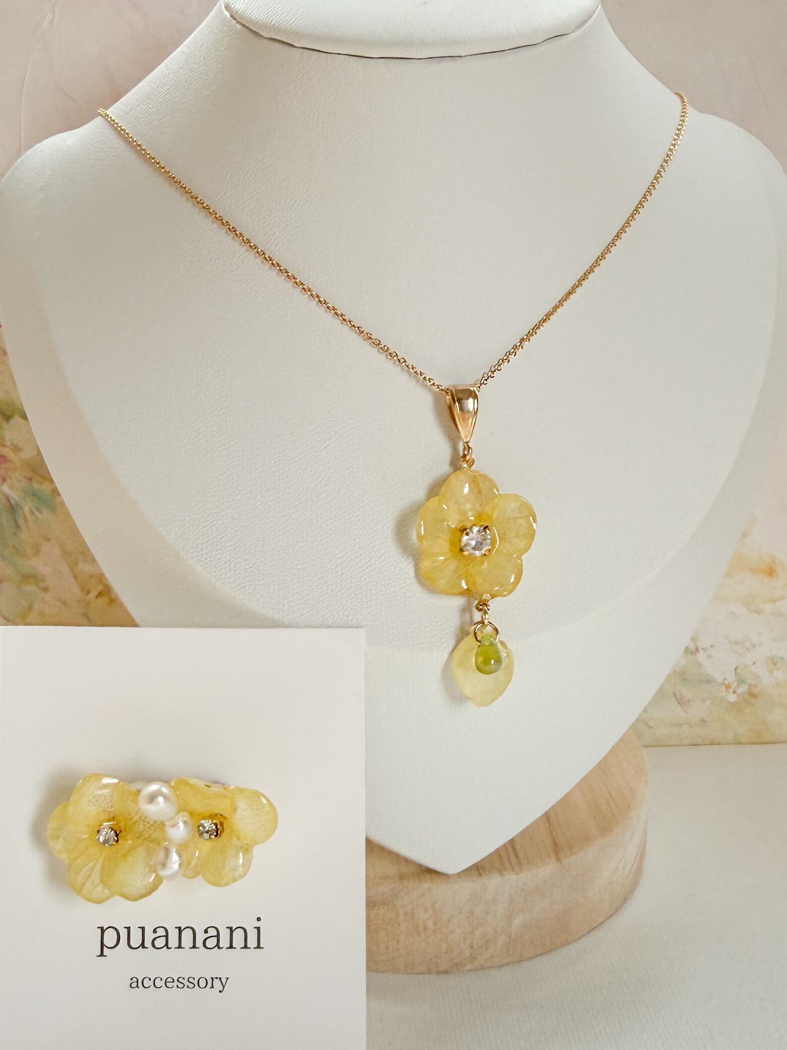 # 商品説明文:黄梅ブローチ、ネックレスセット 単品で揃えるより3100円お得です