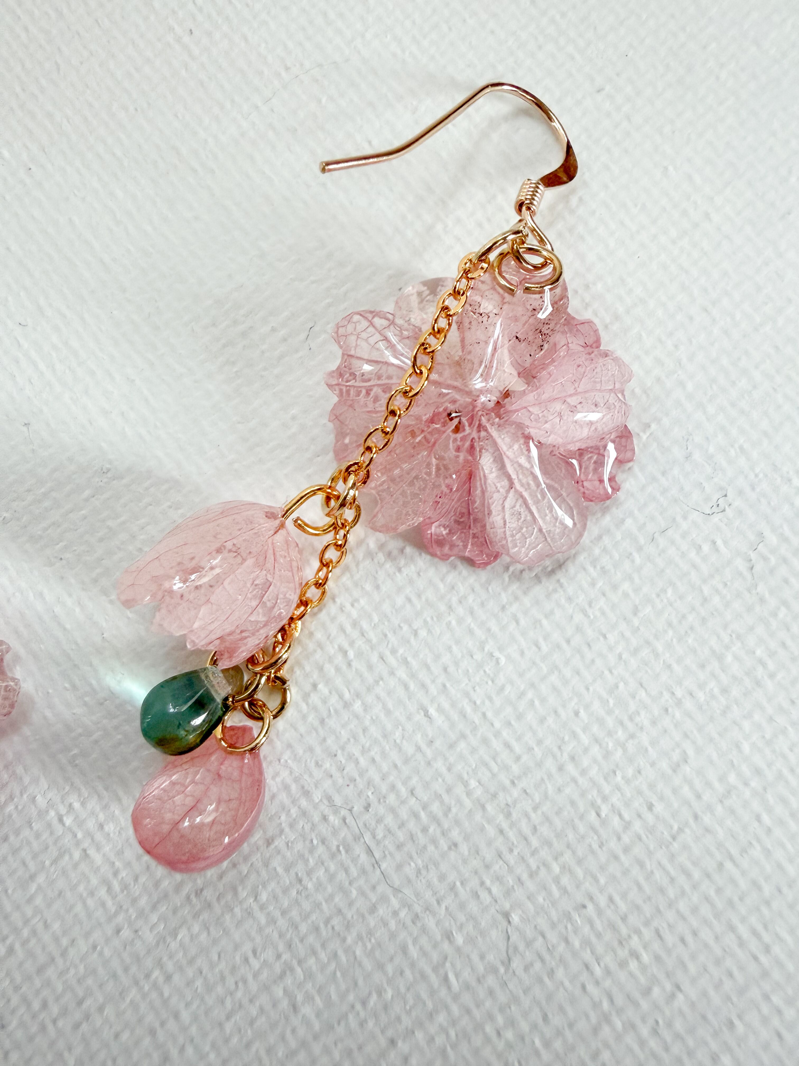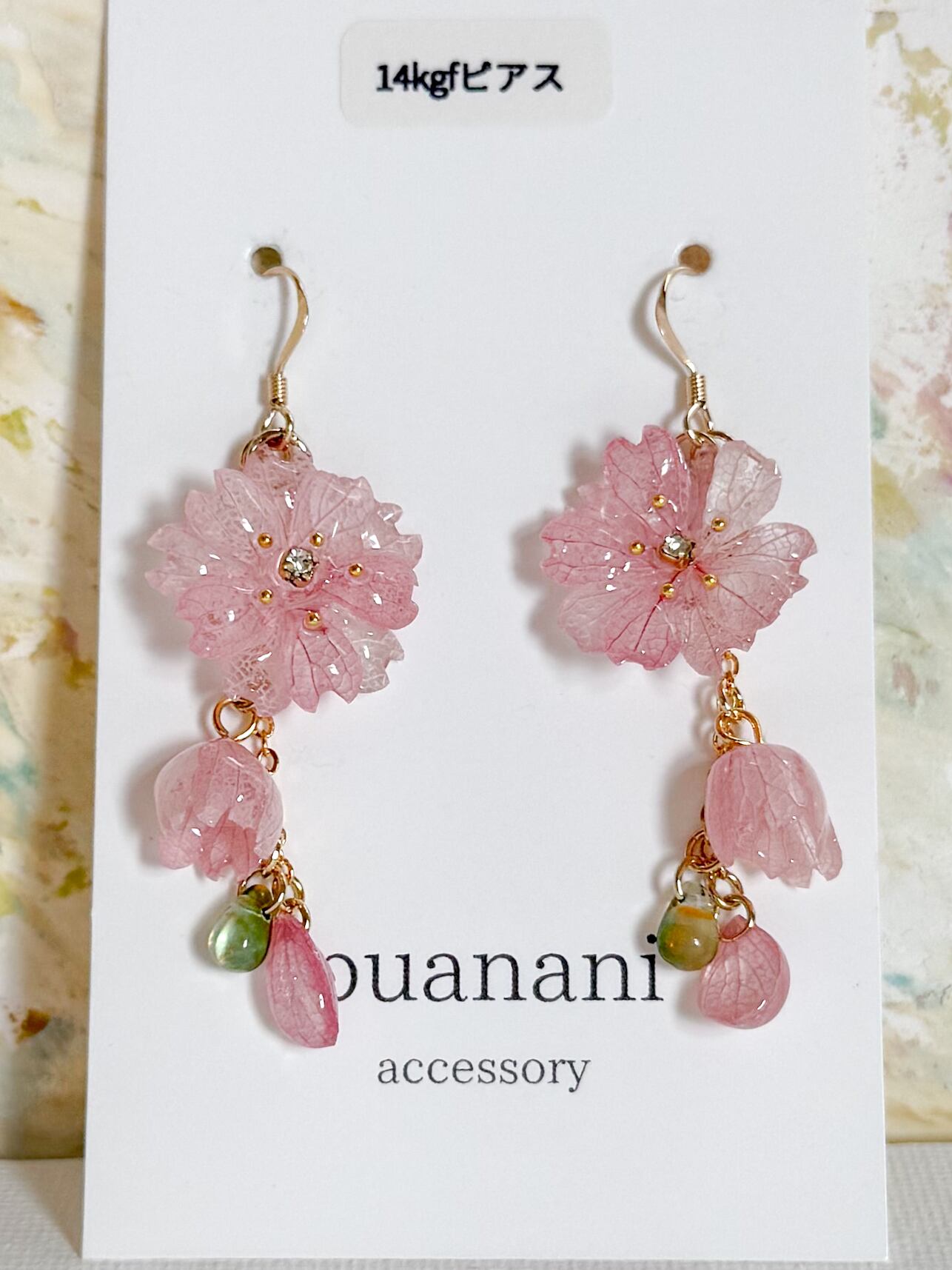 優雅な春の瞬間を彩る「桜 ブローチセット」が新たに登場しました!このセットには、ピンクあじさいから成形された3輪のブローチが含まれており、ピアスまたはイヤリングを選べるスタイルで、あなたのコーディネートに合わせることができます。ピアスには14kgfを、イヤリングには16kgpを使用しており、肌に優しい素材です。手作りで心を込めて仕上げられた特別なアクセサリーで、あなたのスタイルに春の華やかさをもたらします。